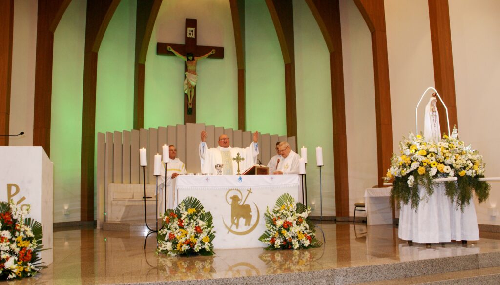 Estimados romeiros e romeiras de Nossa Senhora de Fátima. Minha Saudação a todas as famílias aqui presentes e que rezam pelos meios sociais, hoje celebrando seu jubileu. Que bom estarmos na casa da Mãe! Viemos de diferentes lugares. Trazemos no coração muitos pedidos, agradecimentos e depositamos aos pés de Nossa Senhora de Fátima, nossa queridíssima Mãe.
