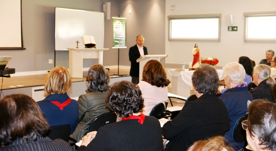 Pe. José Carlos Sala, Reitor do Seminário e do Santuário Diocesanos N. Sra. de Fátima, orientou o retiro anual do Apostolado da Oração, agora designado Rede Mundial de Oração do Papa, no Auditório São José e no Santuário, nesse domingo, dia 09, festa da Dedicação da Basílica São João do Latrão, a Catedral de Roma, a Catedral do Papa. Participaram em torno de 140 pessoas de quase todas as 30 paróquias da Diocese. O diretor espiritual diocesano do Apostolado, Pe. Gladir Pedro Giacomel, vigário paroquial da Catedral e Reitor do Santuário N. Sra. da Santa Cruz, que recentemente passou por cirurgia de substituição de válvulas cardíacas, esteve presente do começo ao fim.