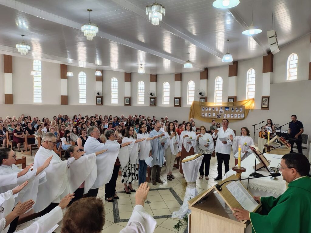 desde 10.02.2024; a Secretária da paróquia Jurema Balsanello; Equipes de Ministros, Grupos de