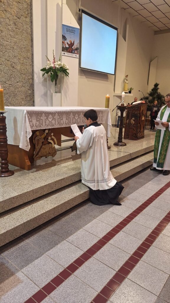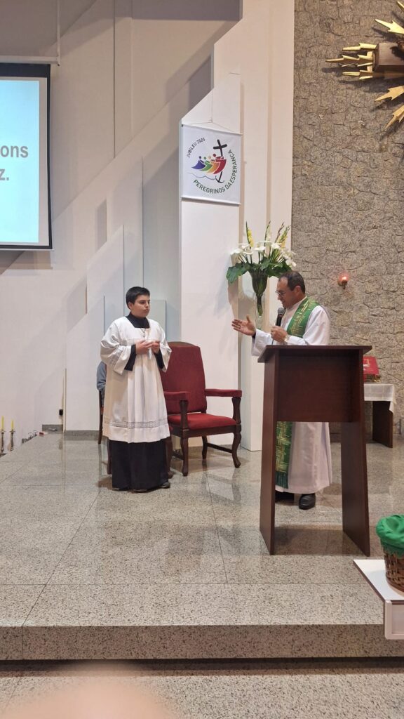 No final de semana do dia 23 de agosto, a Paróquia São Pedro celebrou um momento histórico e de grande alegria: o jovem Othávio Augusto Brusamarello, até então coroinha, recebeu o rito de investidura como acólito, tornando-se o primeiro acólito da paróquia.