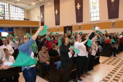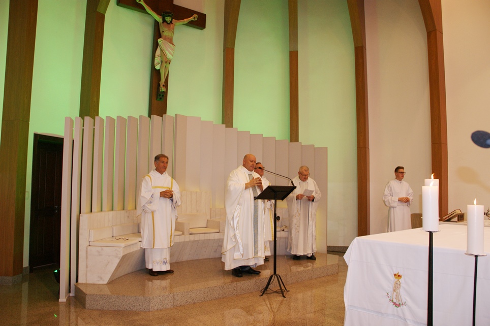 Como vem acontecendo há vários anos, o terço e a missa das 14h tem a presença especial das zeladoras das capelinhas domiciliares com a presidência do seu assessor, atualmente, Pe. Moacir Luiz Noskoski.